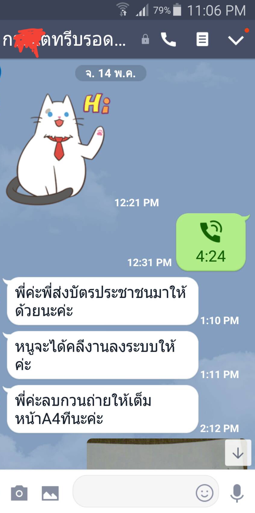 แล้วทีนี้วันที่ 14 พ.ค. ทางพนักงาน 3BB ชื่อ คุณ กต (ชื่อย่อ) ก็ได้ติดต่อมาทาง Line ซึ่งทางคุณพ่อก็ได้ให้ Line คุณแม่ไปค่ะ