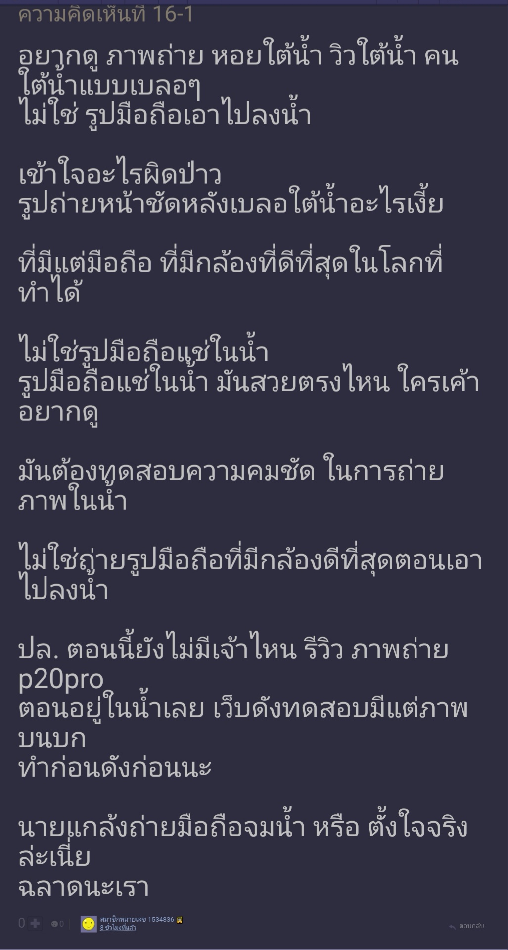 คิดว่ายังไง กับคนที่หาว่าP20 Pro กันน้ำไม่จริง พอทำให้ดูจริง..ก็แถให้ไปถ่ายใต้น้ำ??