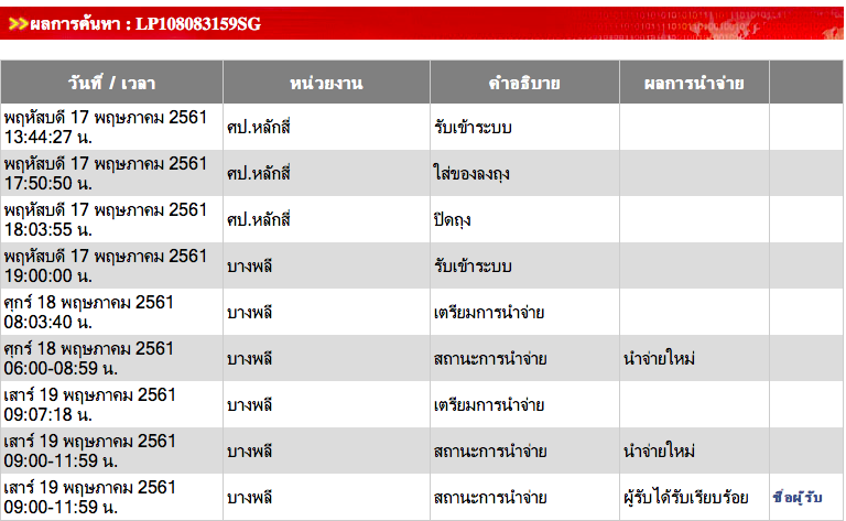 วันที่21 เห็นว่าผิดปกติเลยเข้าไปตามที่ไปรษณีย์บางพลี ที่ไปรษณีย์เช็คของซักพักบอกของส่งไปแล้ว มีคนเซนต์รับแล้ว แต่ที่บ้านไม่มีคนชื่อนี้ ไปรษณีย์บอกว่าเราเขียนที่อยู่ผิด (หมู่ผิด) เลยไปส่งอีกบ้าน
