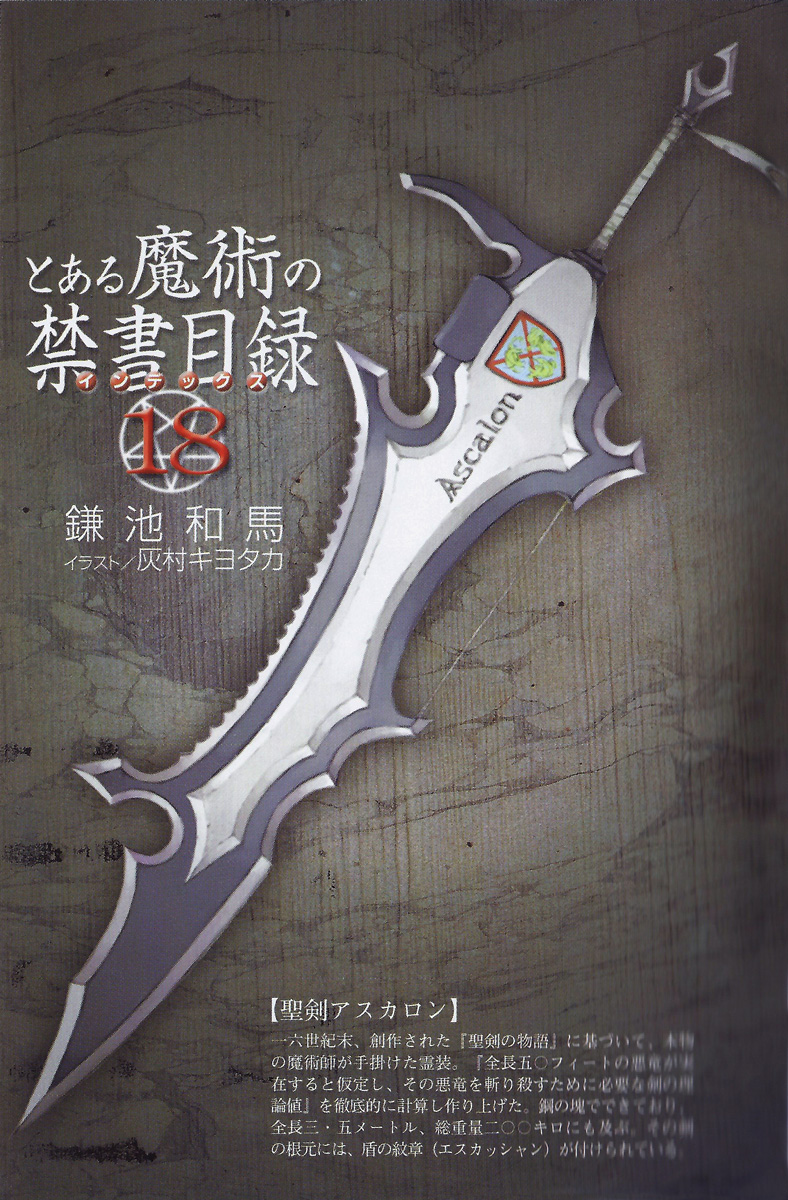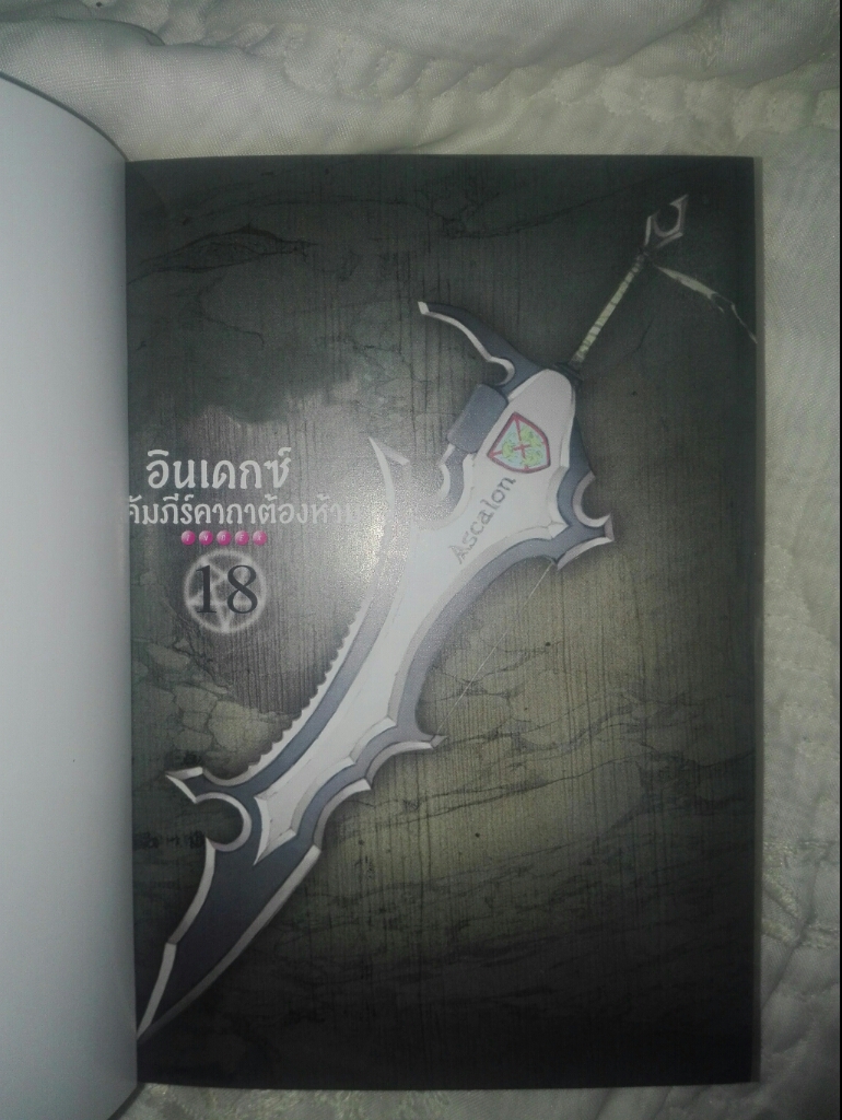 พอดีว่าผมไปซื้อนิยายอินเดกซ์เล่ม 18 มานะครับ แต่รู้สึกตะหงิดๆแปลกๆ ที่จริงมันก็ไม่ใช่เรื่องใหญ่อะไรหรอกครับ เพราะไม่ได้เกี่ยวกับเนื้อเรื่องเลย ที่ผมสงสัยคือ ทำไมนิยายเล่ม 18 แบบแปลไทยถึงไม่มีรายละเอียดที่ดาบอัสคาลอนเหรอครับ? เห็นแแบบญี่ปุ่นกับแบบอังกฤษก็มีเขียน รึว่าแบบแปลไทยเขาตั้งใจไม่ให้มีอยู่แล้ว? หรือเล่มที่ผมซื้อลืมใส่? เลยอยากถามเพื่อนๆที่ได้ซื้อเล่ม 18 มาแล้วว่า เป็นเหมือนกันไหม (ทั้งที่เล่ม 17 ยังมีเขียนอธิบายดาบเคอร์ทาน่า เซคคันด์เลย 55) ขอบคุณมากครับ