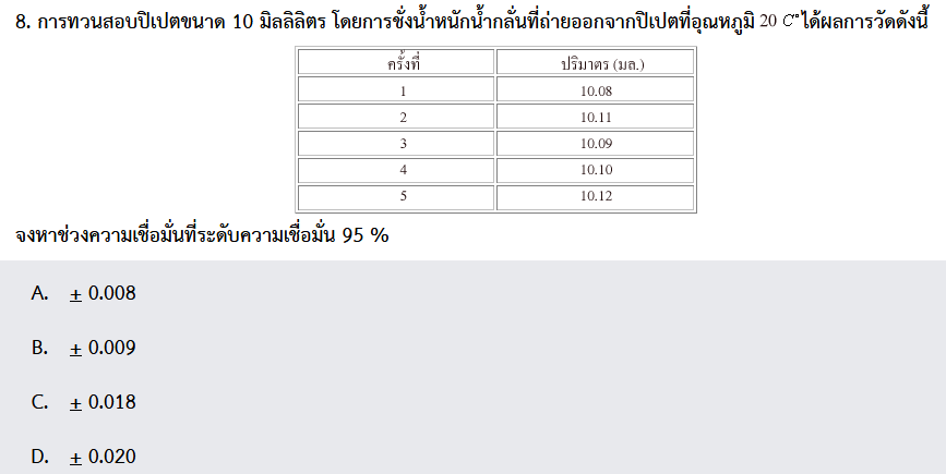 ค่าเฉลี่ย = 10.10 SD = 0.0158 Z 95%= 1.96 n = 5
