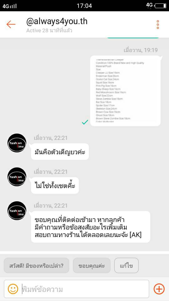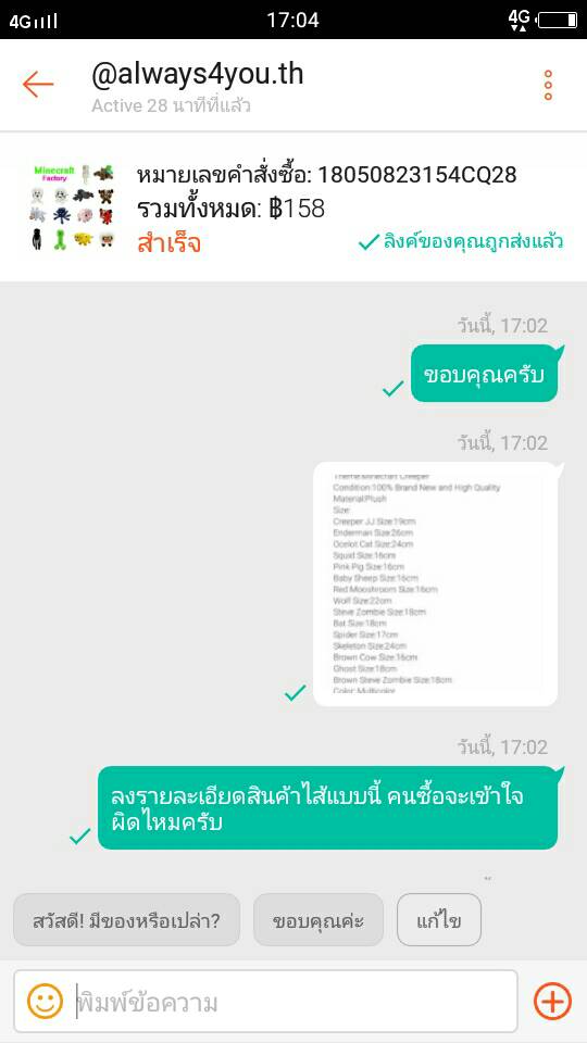 ผมสั่ง ตุ๊กตาจะมาให้ลูกสาวเป็นของขวัญวันเกิด ตามนี้ครับ