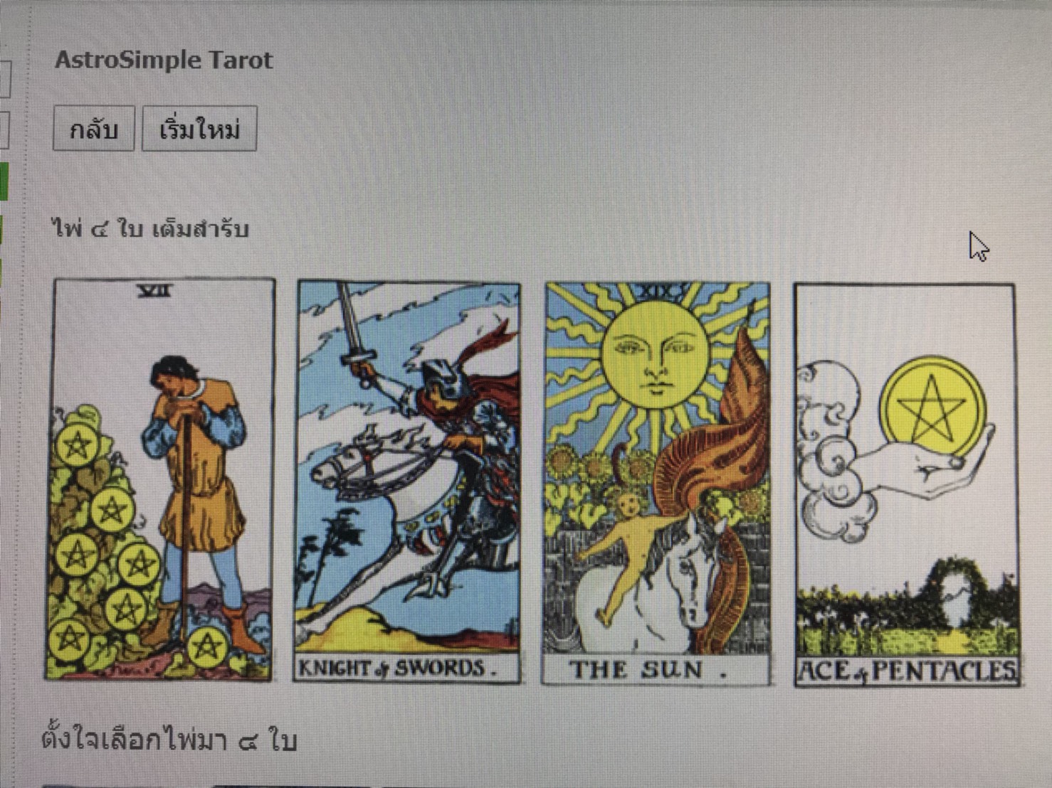ไพ่ออกมาแบบนี้อ่ะค่ะ รบกวนอ่านไพ่ให้หน่อยนะคะ...กราบขอบพระคุณล่วงหน้าค่ะ
