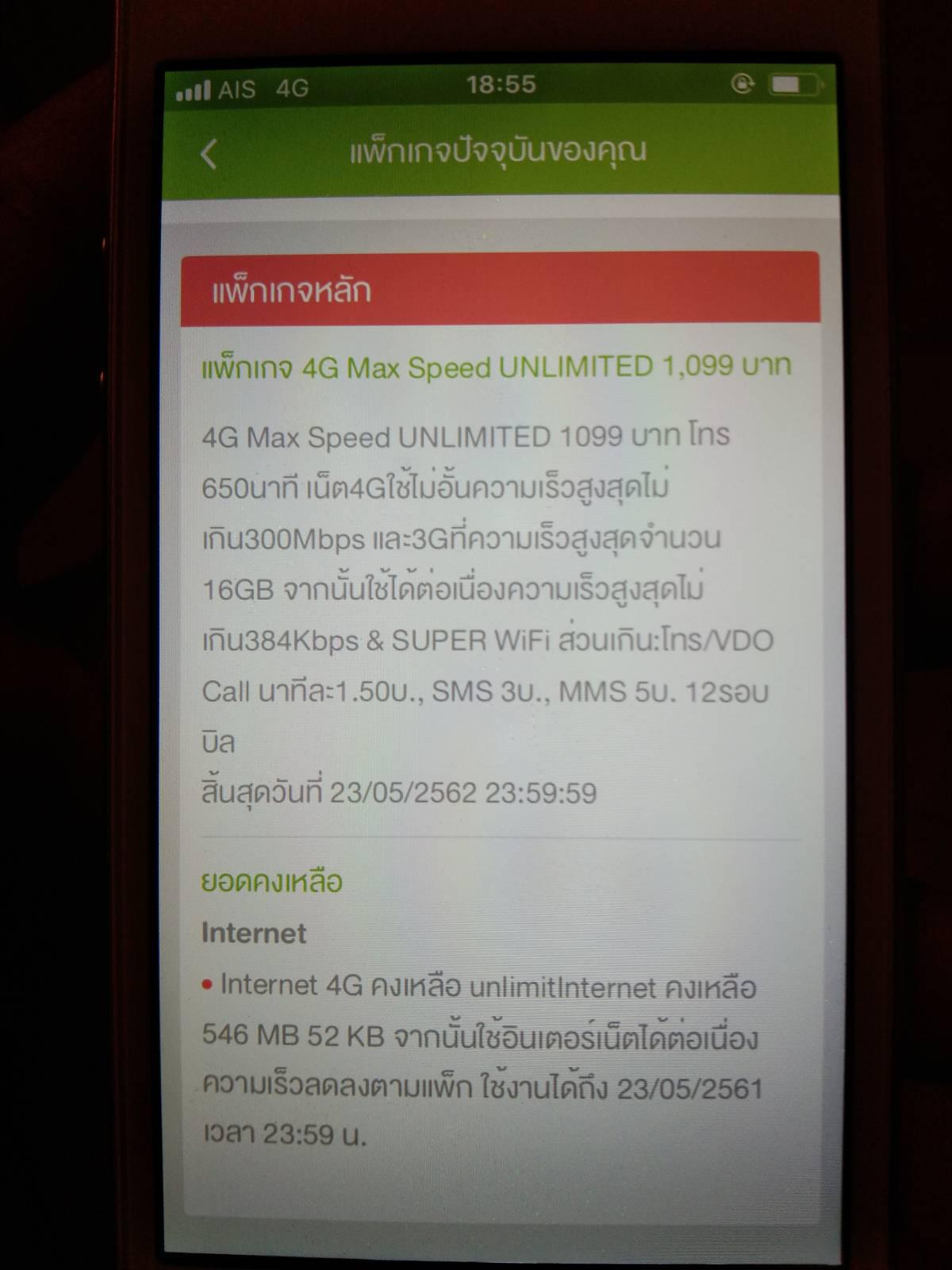เพิ่งไปเปิดเบอร์รายเดือนมาวันนี้ตอนประมาณบ่ายสอง แพคเกจ 1099 บาท 4G ไม่อั้น 3G 16 GB มาลองเช็คเมื่อสักครู่ ใช้ 3G หมดไป 15 GB ทั้งๆที่ยังแทบไม่ได้เล่นอะไรเลย