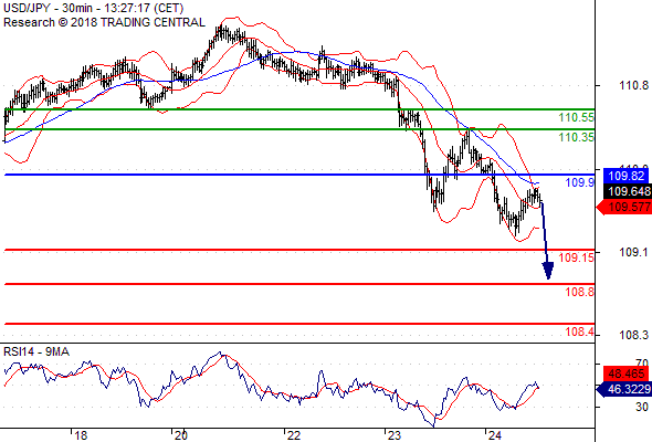 จุดที่ต้องการ: สถานะขายต่ำกว่า 109.90 เป้าหมายต่อไปที่ 109.15 และ 108.80