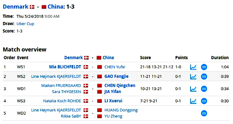 • Match Uber Cup Denmark - China : https://www.tournamentsoftware.com/sport/teammatch.aspx?id=0057097B-20D5-4CF4-8E22-7138EE7565DC&match=150