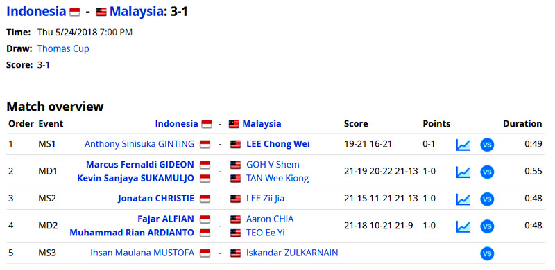 • Match Thomas Cup Indonesia - Malaysia : https://www.tournamentsoftware.com/sport/teammatch.aspx?id=0057097B-20D5-4CF4-8E22-7138EE7565DC&match=69
