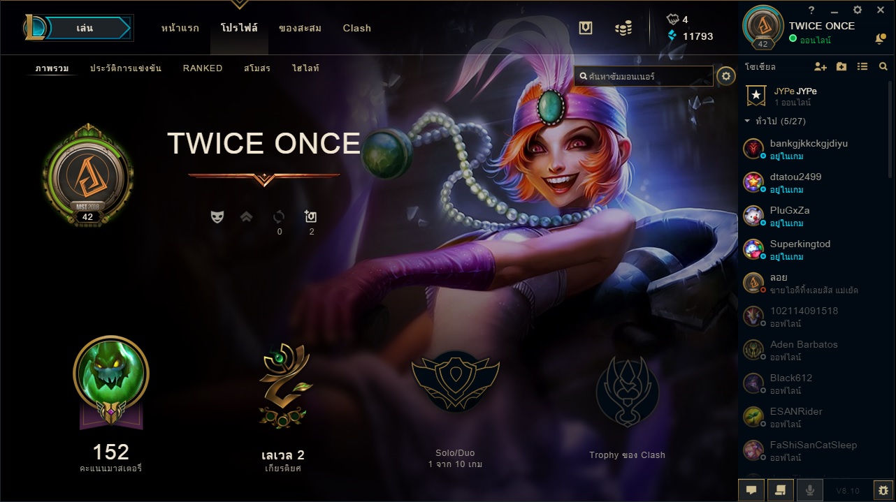 ผมตั้งสโมสร JYPe ไว้ครับ ชื่อในเกมผม TWICE ONCE