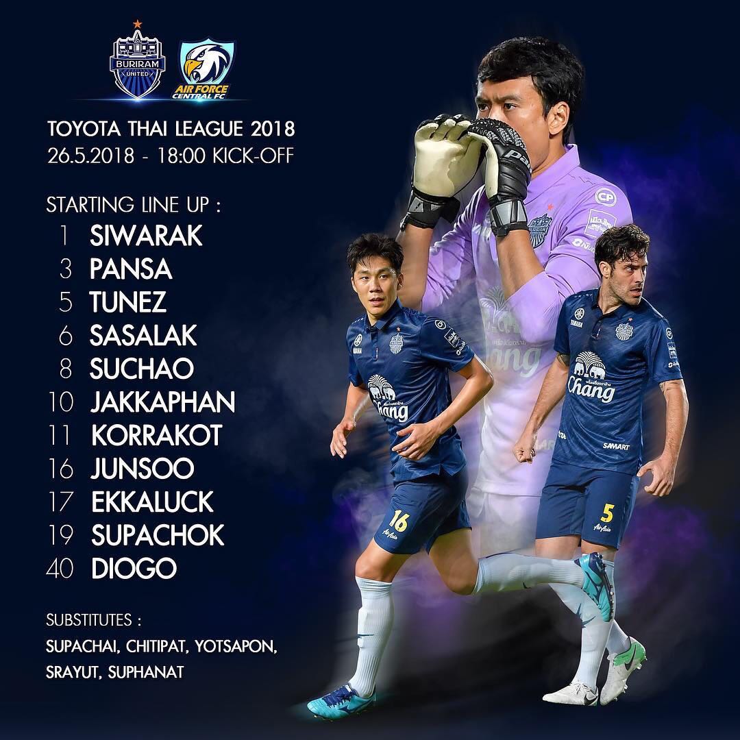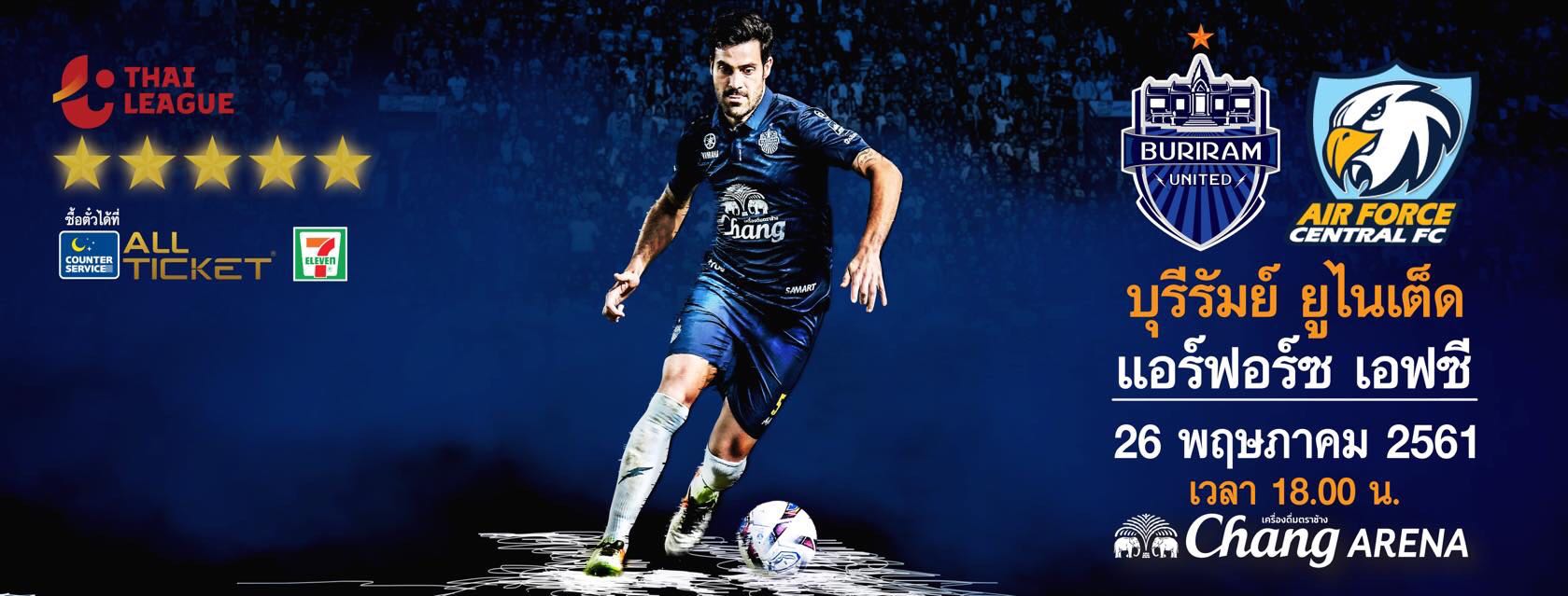วันนี้เชิญชวนทุกท่านร่วมฉลอมแชมป์เลกแรก โดยพร้อมกันที่สนามช้างอารีน่า บุรีรัมย์ ยูไนเต็ด พบ แอร์ฟอร์ซ เซ็นทรัล เอฟซี สนาม ชัาง อารีน่า เวลา 18.00 น. ถ่ายทอดสด True4U