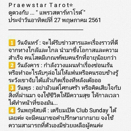 ดูดวงประจำวันอาทิตย์ที่ 27 พฤษภาคม 2561 by แพรวสตาร์ทาโรต์