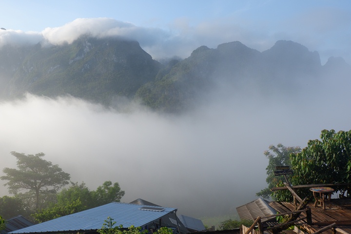 ทานข้าวเสร็จก็ใกล้ค่ำพอดี ขอบอกยุงตัวใหญ่มาก กัดที่เป็นตุ่มใหญ่เลยที่เดียว รออะไรละค่ะเข้าเต็นซิ นอนดีกว่า ดาวก็คงไม่มีหลอกเพราะอากาศเหมือนฝนจะตกตลอดเวลา ตื่นเช้ามาก็เจอแต่หมอก