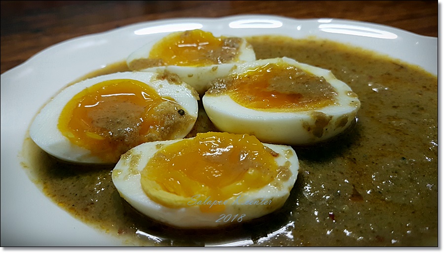 ลากันที่ภาพนี้นะครับ วันก่อนทำน้ำยาราดขนมจีนกินกัน เส้นหมด ผักหมด น้ำยาเหลือจัดการเอามาราดไข่มะตูมกินกับข้าวสวย