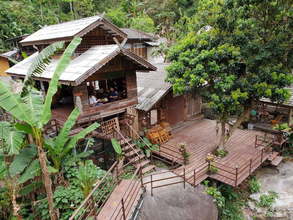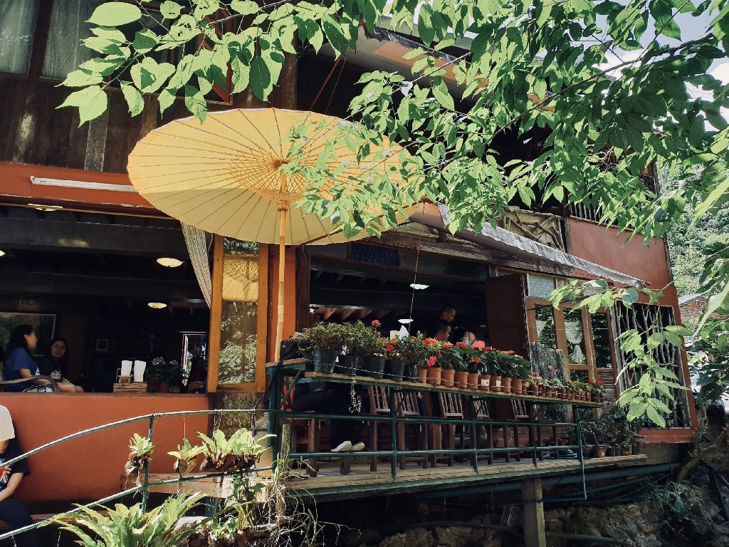 เต็มที่กับม่อนแจ่มแล้ววว ไปต่อกันเถอะ ทางผ่านตอนลงเราแวะคาเฟ่กลางป่าชื่อว่า Jungle de cafe บรรยากาศดี หลับเลยยาวๆ