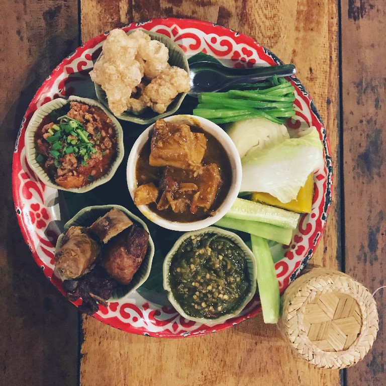 และหาอาหารพื้นเมืองทาน เราเลือกไปร้าน เฮือนม่วนใจ๋ ร้านนี้บรรยากาศดี อาหารอร่อย จัดใส่ถาดมาน่ารักเลย