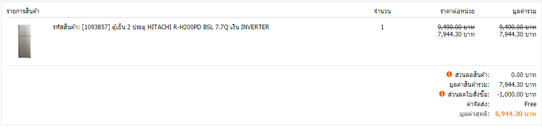 ของถูกเอามาบอกต่อค่ะ ตู้เย็น 2 ประตู HITACHI INVERTER ราคา 6944 บาท