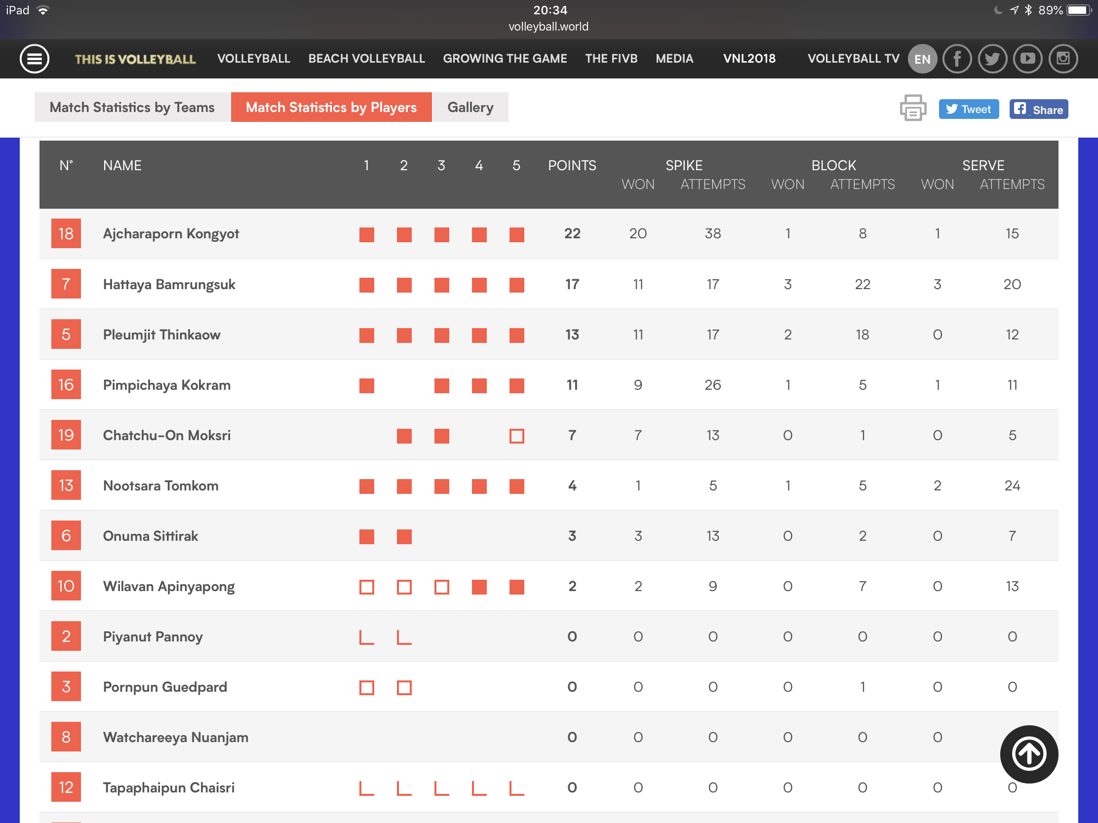 *** สถิติผู้เล่น VNL 2018 ไทย 0-3 โดมินิกัน *** เพียวท๊อปสกอร์