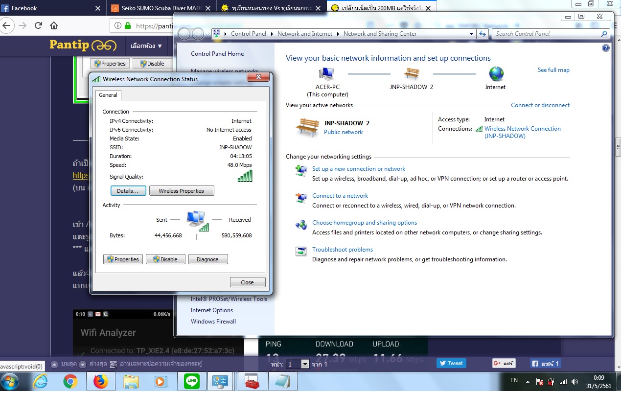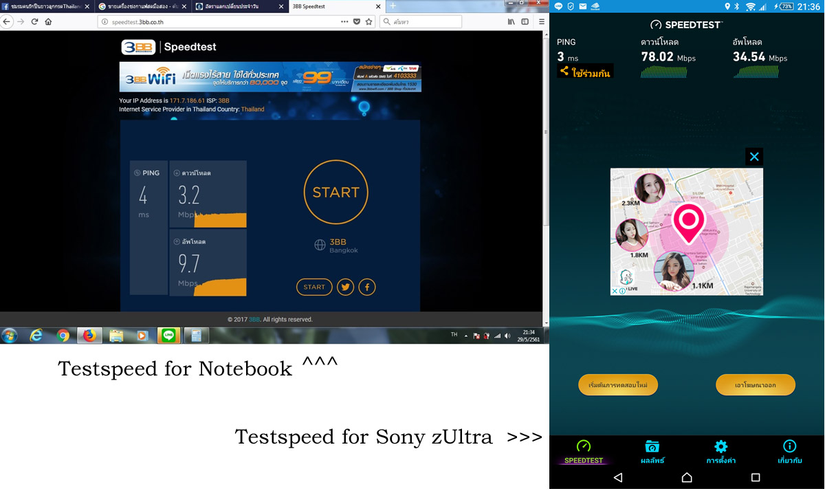 สอบถามครับ พึ่งอัพเน็ตจาก vdsl เป็น fiber 100/30 คอมตั้งโต๊ะไม่มีปัญหาครับโมเดมใกล้เครื่องใช้สายแลน แต่โน๊ตบุ๊คเล่นในห้องนอนชั้นสอง เน็ตช้าลองเทสสปีดได้ Download 3.2 mbps , Upload 9.7 mbps , Ping 4 ms (เป็น nb Acer as4720 เก่าหลายปีแล้วสเปคไวเลสเป็น Intel(R)PRO/Wireless 3945BG Network) เลยคว้ามือถือ 4G และเทสสปีดดูได้ 78.02 / 34.54 ping 3ms อย่างนี้ถือว่าปกติไหมครับ(เหมือนตอนเป็น vdsl จะได้ความเร็วสูงกว่านี้)