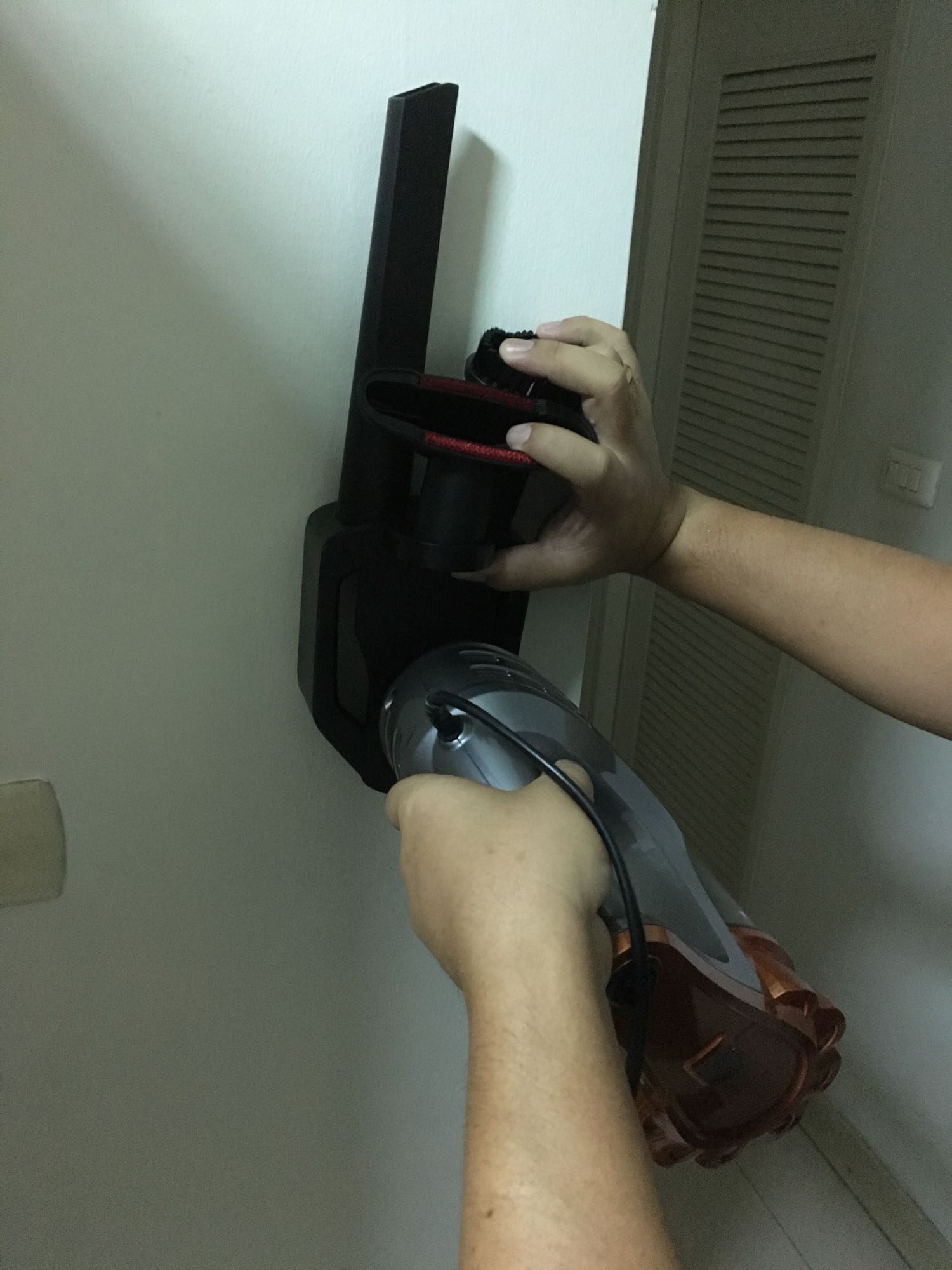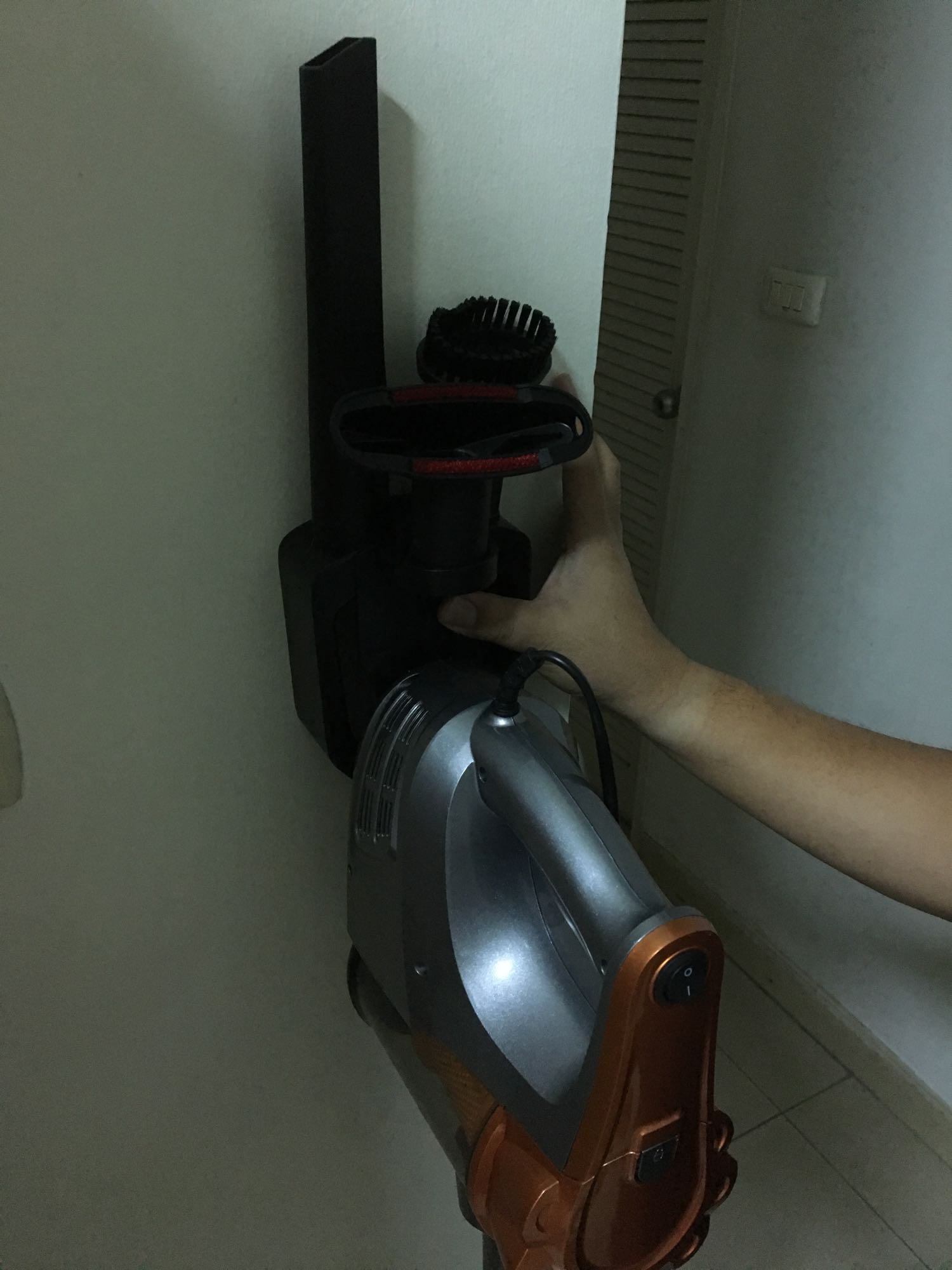 เค้ามีที่แขวนเจาะน้อตข้างกำแพงเพื่อแขวนเก็บ แต่เราว่ามันไม่ค่อยแข็งแรงตัวพลาสติกที่ยื่นมาสำหรับยึดเครื่องเวลาจะถอดเข้าออก เสียงมันเหมือนจะแตกเลย