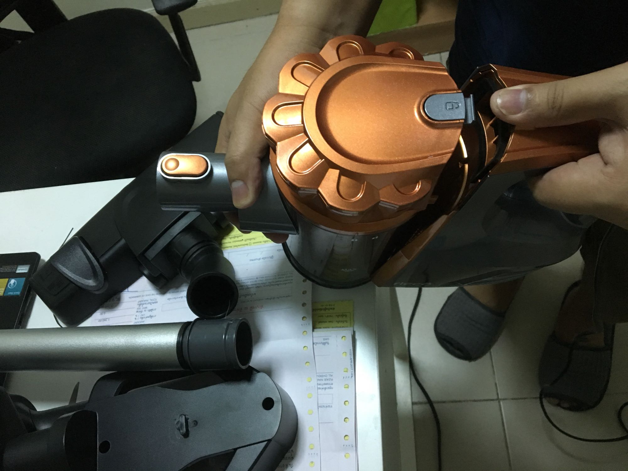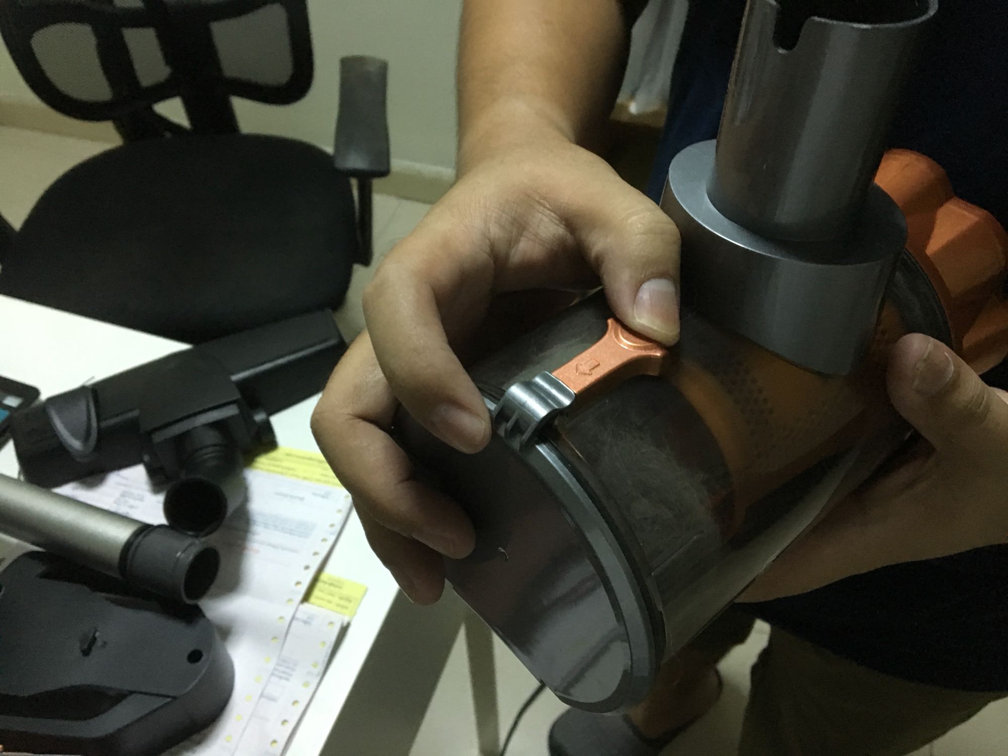 การประกอบกล่องเก็บฝุ่นตามรูป เนื่องจากเราเอามาดูดขนหมา เวลาเทออกมันต้องใช้มือดึงด้วย เคาะเฉยๆขนหมาไม่ออกจากกล่อง