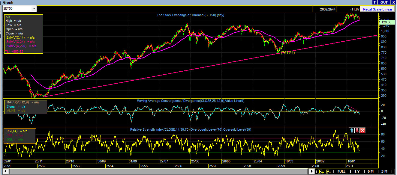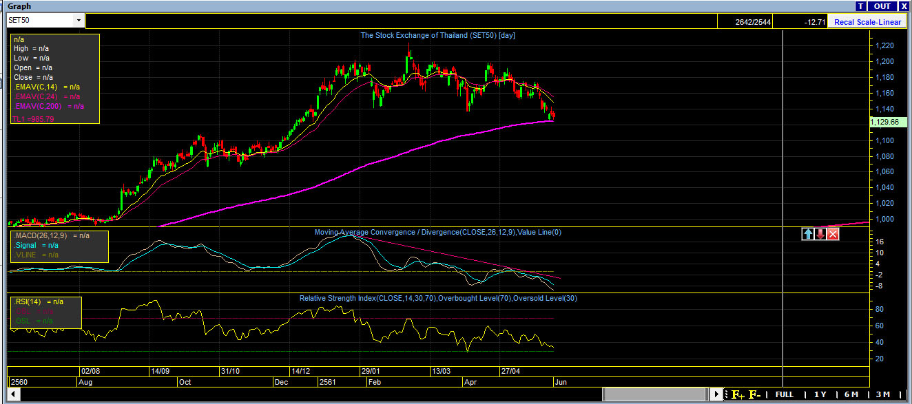 ถึงแม้ว่า SET จะหลุดเส้น 200 ไปแล้ว แต่ SET50 ยังไม่หลุดส้น 200
