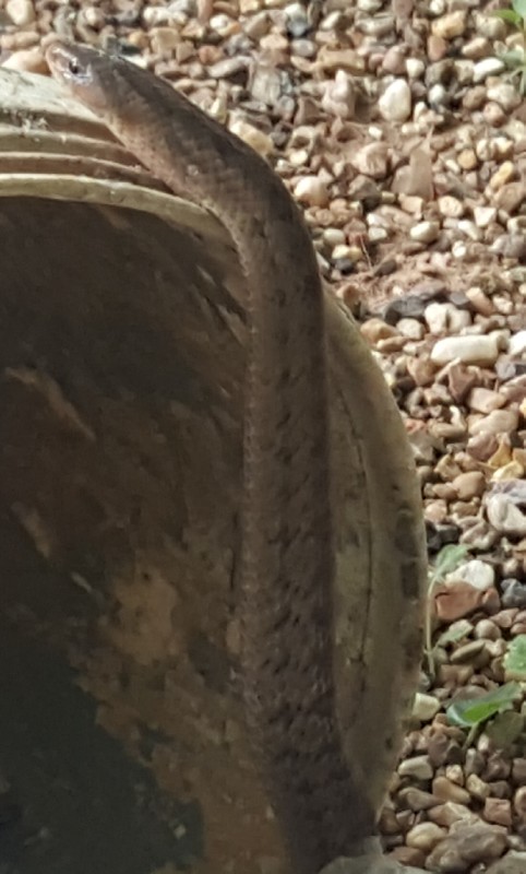 คืองูเข้าบ้านค่ะ ออกมาจากท่อน้ำ เป็นลูกงู ออกมาสองตัว ถ่ายรูปไว้ไม่ทัน แต่ตัวเท่านิ้วก้อย ยาวคืบนึง เป็นสำน้ำตาลออกดำๆ มีวงสีขาวรอบคอ อยากทราบว่านี่คืองูอะไร งูแบบนี้มีอันตรายมั้ยคะ ****เพิ่มเติม เลื