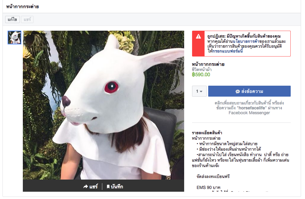 เงิบหนักมาก เราขายหน้ากากหัวสัตว์ใน Facebook แต่ FB นึกว่าเราขายสัตว์จริงๆ