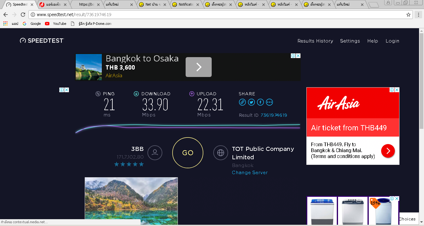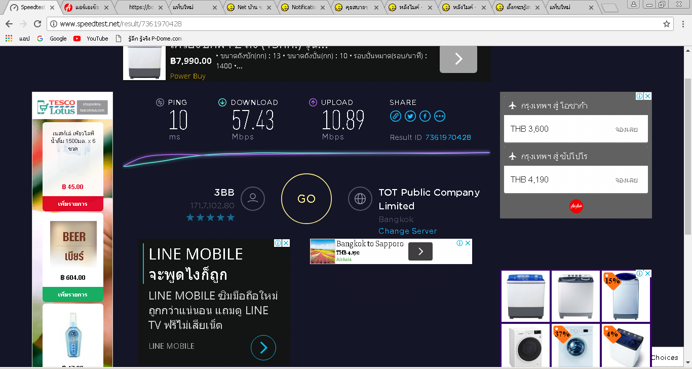 3bb พอจะย้ายค่ายนี่ upspeed มาเกินมากๆ เช็คทีไรเกิน 50เมกตลอด เล่นไวมากๆๆ รู้สึกเสียดายว่าทำไมตอนช่วงนั้นไม่เก็บลุกค้า ให้โปรลูกค้าดีๆ ลูกค้าก็ไม่หลงผิดแล้ว