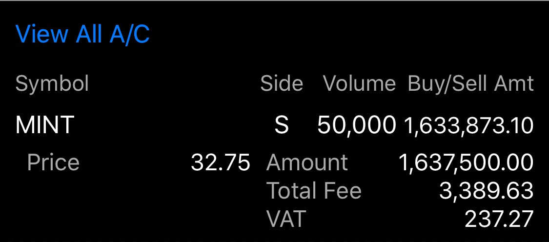 กำไรต่อเนื่องมาทั้งอาทิตย์ เริ่มเช้าวันจันทร์ขอเทคกำไร mint ที่รับมาเย็นวันศุกร์ก่อนแระครับ