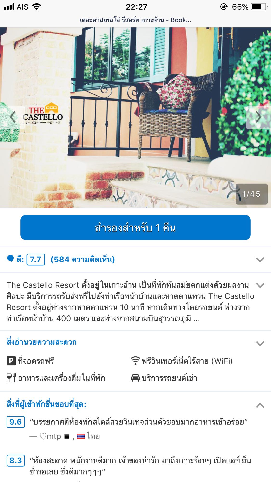 1. พนง ต้อนรับดีมาก ราคาแต่ละห้องก็ไม่แพง บรรยากาศดี ถึงจะไม่ติดทะเล แต่ก็โอเค