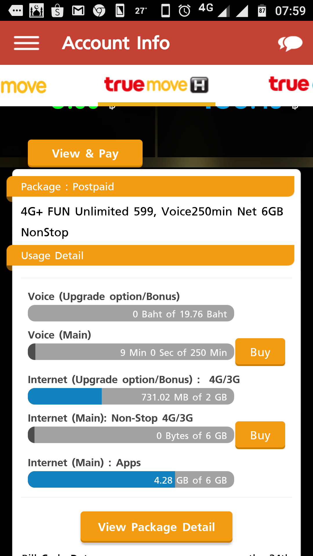 รูปที่สองซื้อ Data เพิ่ม 8GB หลังจากที่ Data ของเดือน พ.ค. หมดเกลี้ยง แต่ Main Data ของเดือน มิ.ย. ก็ถูกใช้งานด้วย