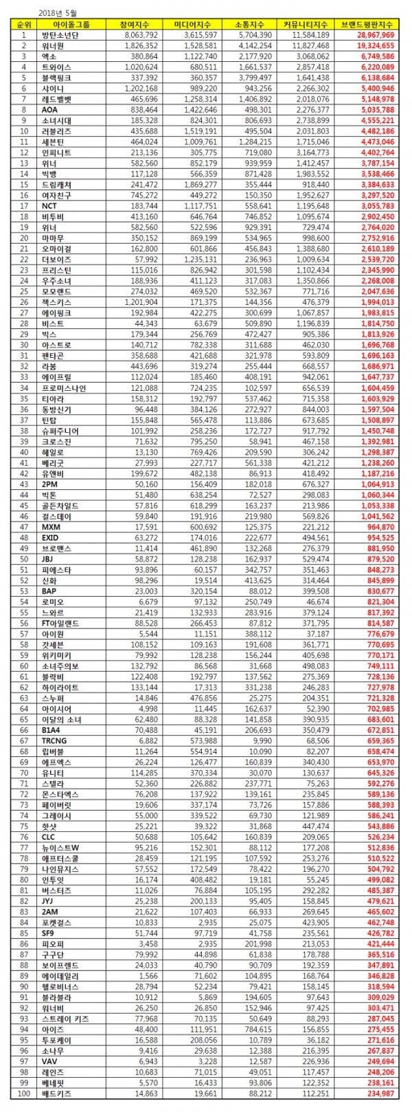 [K-POP] IDOL Groups' Brand Reputation - พฤษภาคม 2018