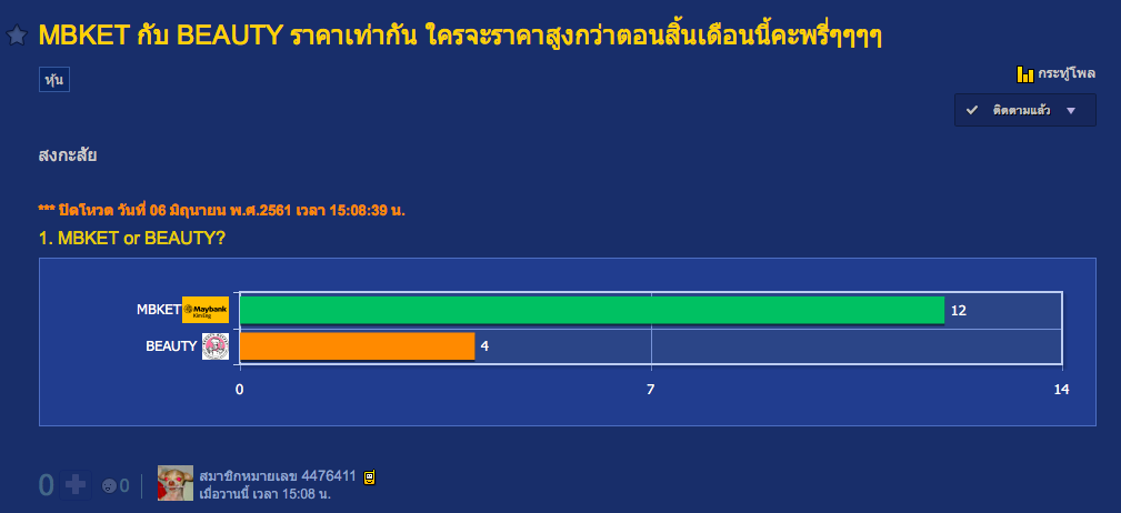 MBKET กับ BEAUTY ราคาเท่ากัน ใครจะราคาสูงกว่าตอนสิ้นเดือนนี้คะพรี่ๆๆๆๆ