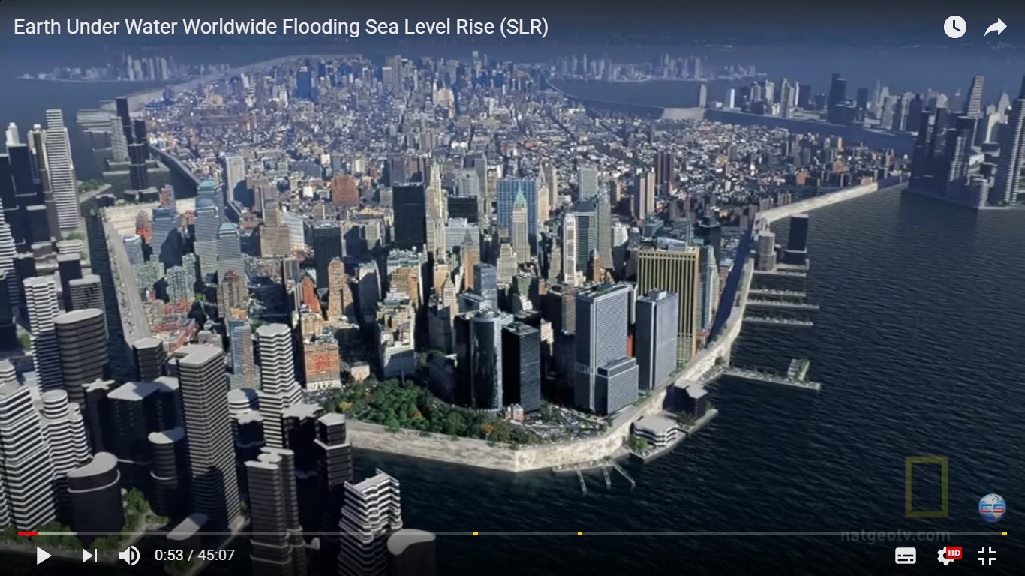 อย่างเช่นรูปนี้ มีการสร้างกำแพงรอบเกาะแมนฮัตตัน และมีเมืองลอยน้ำอยู่รอบๆ
