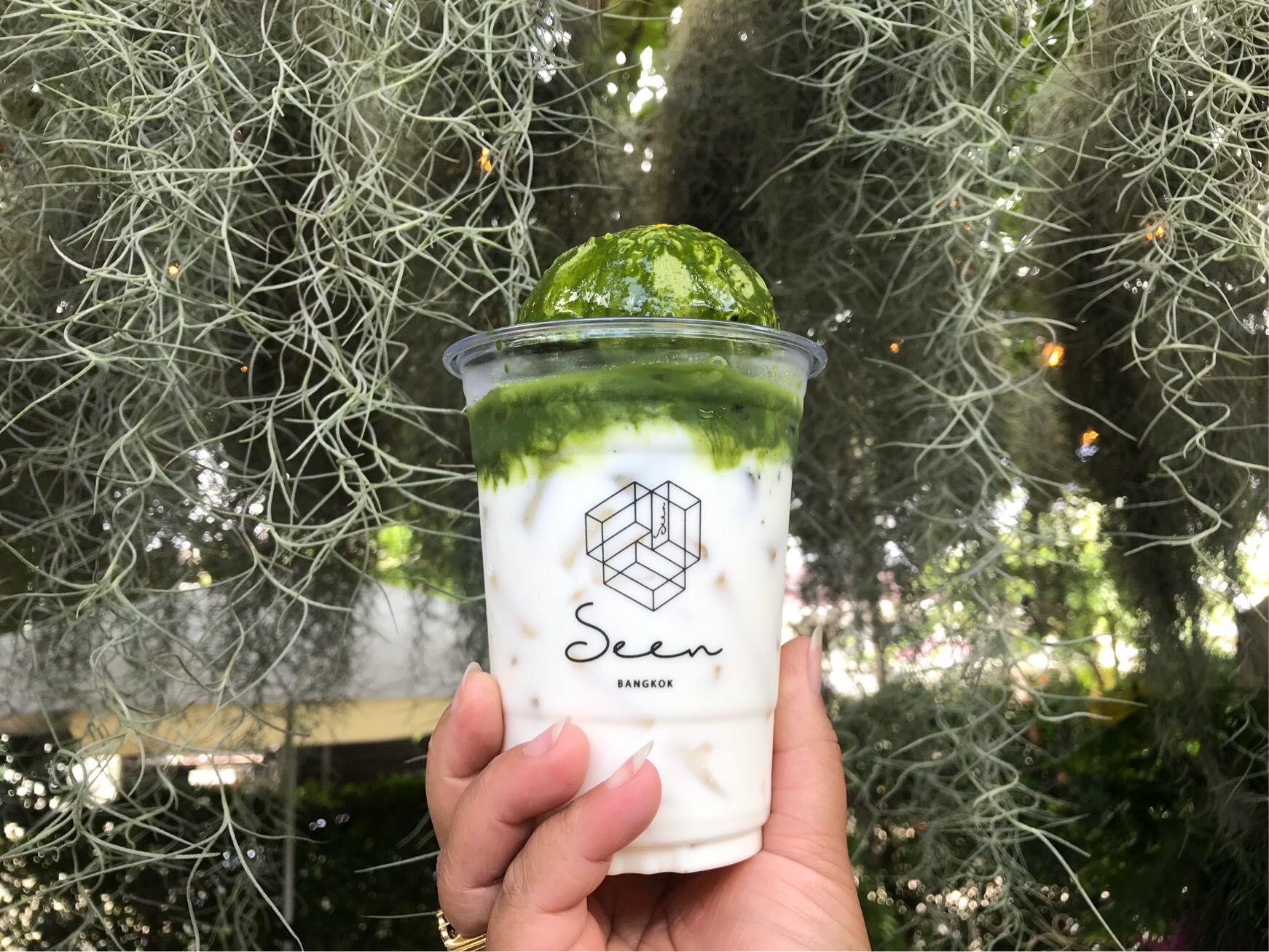 วันนี้สั่งเมนูมัชชะบอมม์ค่ะ อร่อยเข้มข้น แต่ต้องให้ตัวมัชชะบอมม์ ผสมไปกับนมก่อนนะคะ
