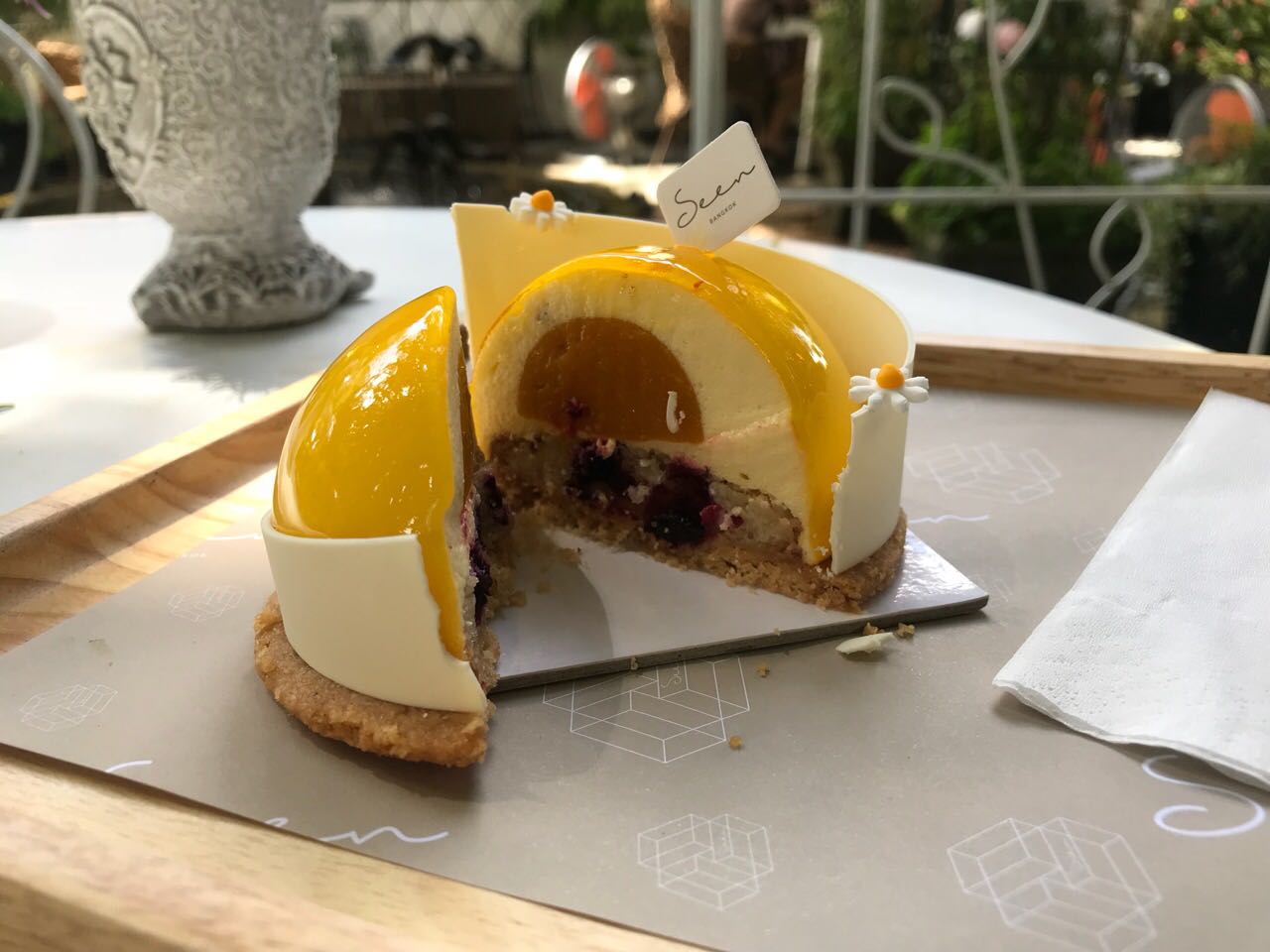 ทานกับเค้ก ᴍᴀʀᴀᴄᴜᴊᴀ เป็นเค้กมูสเสาวรส ด้านในเป็นเนื้อเสาวรส กับมะม่วง ส่วนผสมเข้ากันและเข้มข้นดี ใครชอบทานแบบเค้กมีรสเปรี้ยวแนะนำเลยค่ะ เปรี้ยวสะใจ