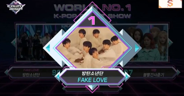 [#BANGTANBOYS] #BTS No.1 #FAKELOVE9thwin 👍on M! COUNTDOWN 180607