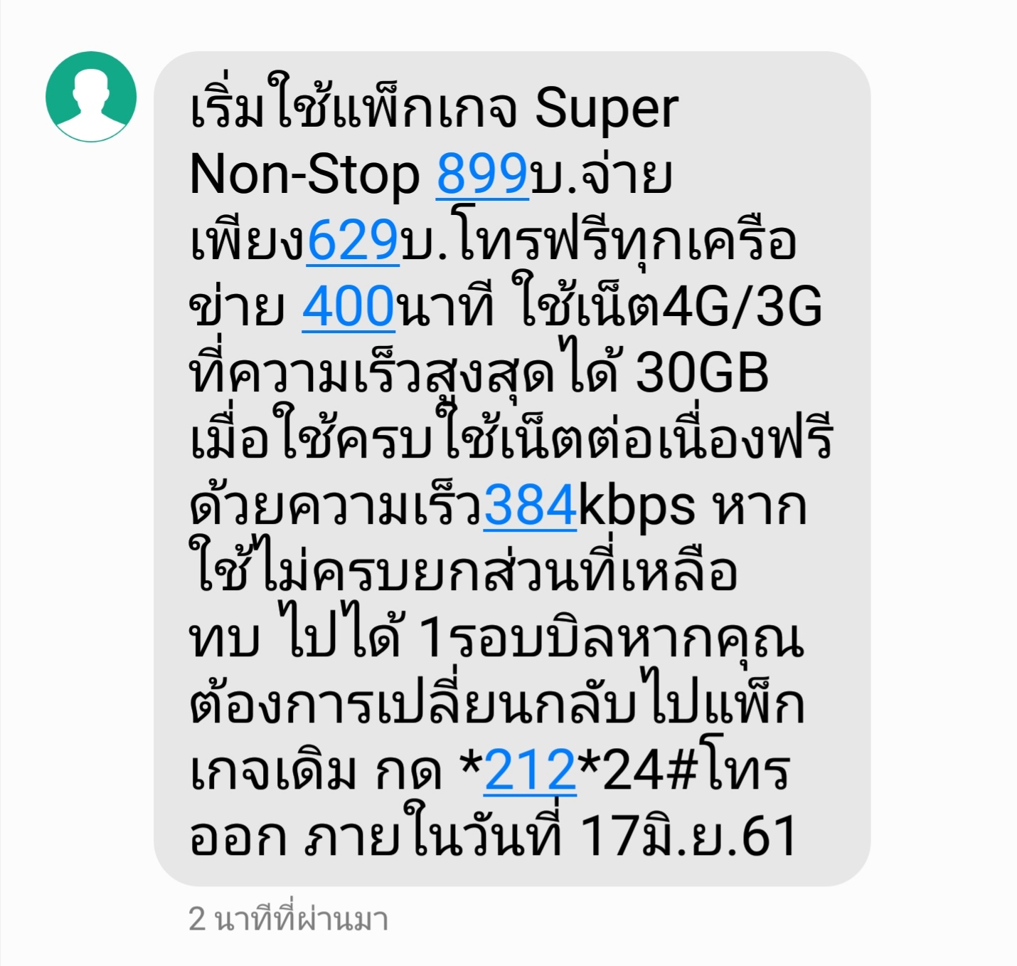 วันนี้ได้รับข้อความจากดีแทคว่าได้เปลี่ยนแพ็คเกจรายเดือนให้แล้ว ซึ่งมันแพงกว่าของเดิม โดยเราไม่เคยขอเปลี่ยน จ่ายเงินค่าโทรก็จ่ายผ่านอินเตอร์เนตแบงค์กิ้งตลอด แทบจะไม่เคยเข้าไปที่ศูนย์เลย