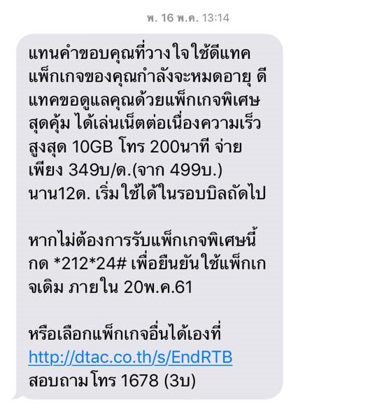 เมื่อ 2-3 วันก่อน เข้าไปดู message แล้วเจอข้อความที่ dtac บอกว่าจะเปลี่ยนแพ็คเกจให้
