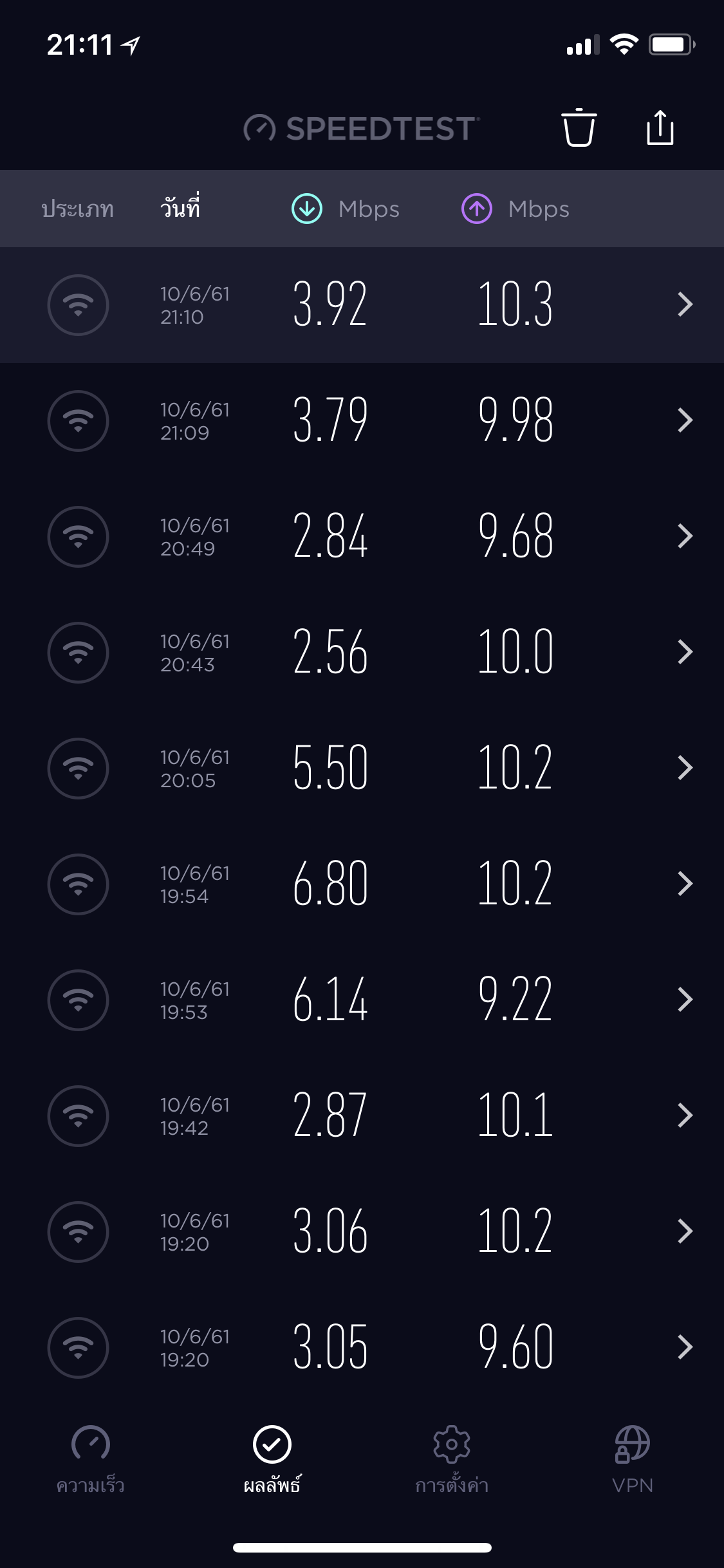 ลองเทสสปีดเรื่อยๆ ก็วิ่ง อยู่ที่เฉลี่ย2-4 เม็ก เบื้องต้นแก้ปัญหาทั้ง เปิดปิดเครื่อง รีบูตเครื่อง ก็ไม่หาย