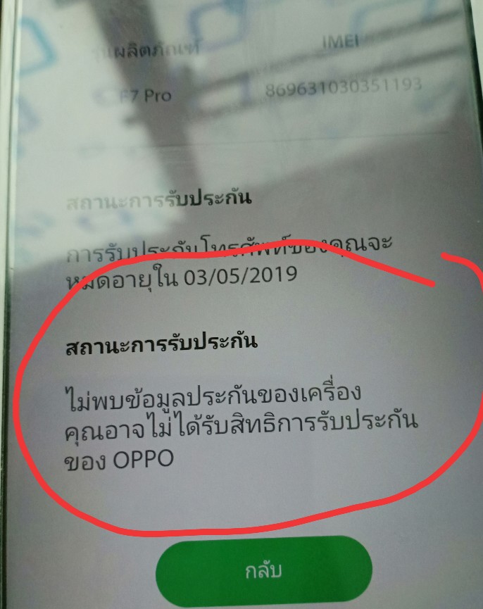 ออปโป้ r7 lite อีมี่868791025130506 มีประกันถึงวันไหนครับ