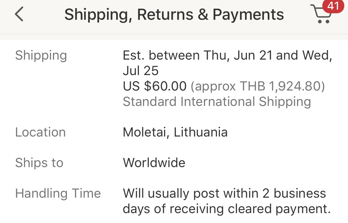 คนขายลงค่าส่งไว้ 60US (ประมาณ 1930บาท)