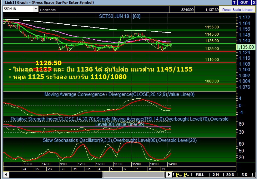 S50M18 กราฟ 60นาที ผมบอกว่า พรุ่งนี้ 12/6/61 ถ้าไม่หลุด 1126.50 และยืน 1136 ได้ ลุ้นไปต่อ ต้าน 1145/1155