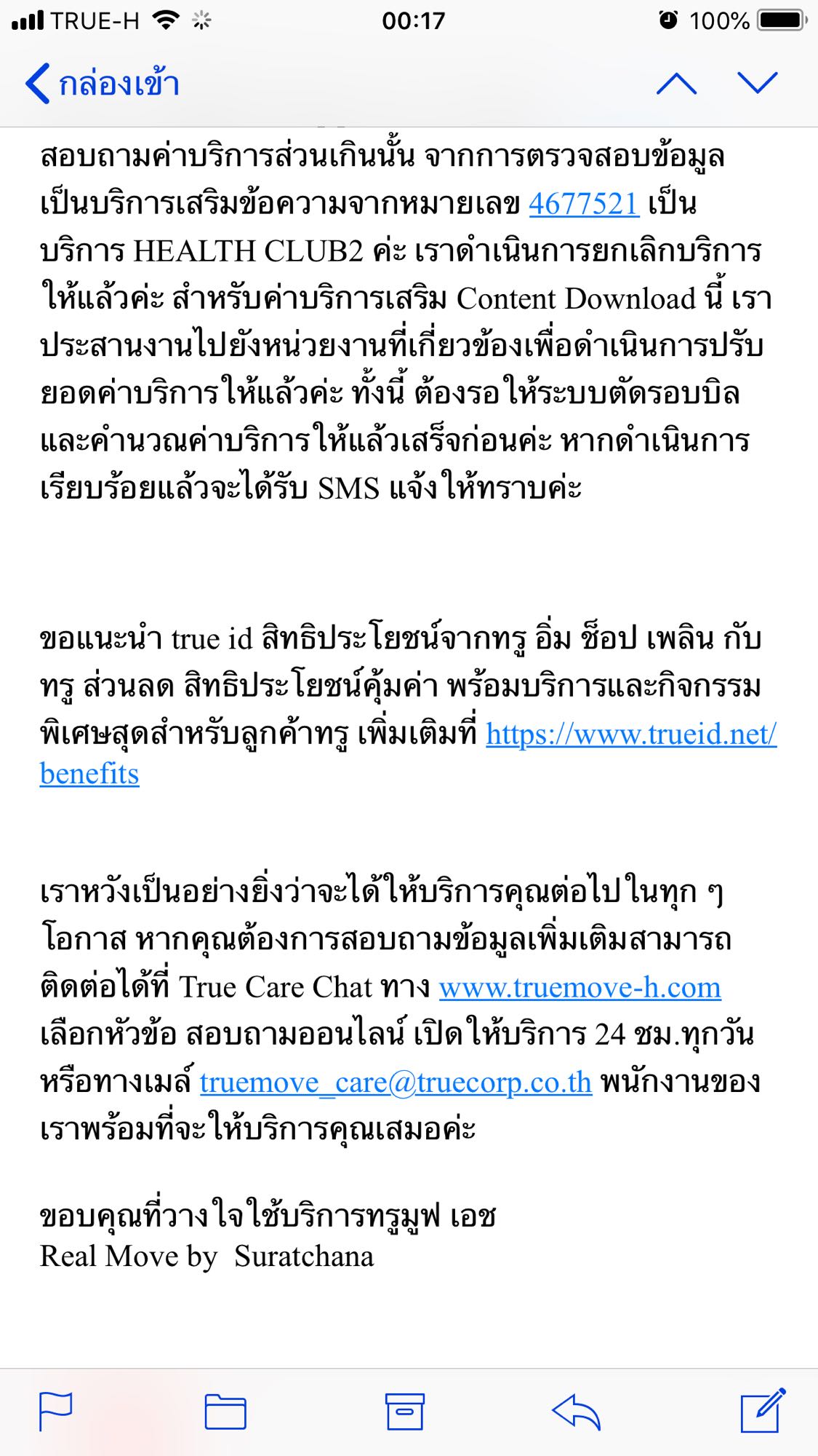 เลยโทรหา คอลเซ็นเตอร์ หาเมนู กดหา พนักงานยากมากๆ สรุปไม่ได้คุยกับพนักงาน เลยลองส่งเมล์ติดต่อไป ได้ใจความดังภาพ