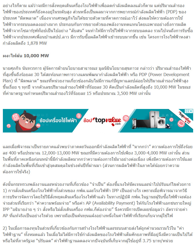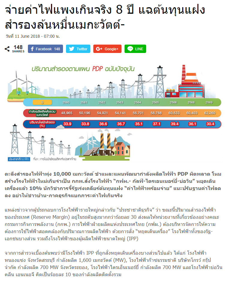 จากสำร้องไฟฟ้า 10,000 เมกะวัตต์ ทำให้ไฟฟ้าพอใช้ไปอีกอย่างน้อย 8 ปี แต่ทำไมรัฐบาลเร่งให้สร้างโรงไฟฟ้าถ่านหิน