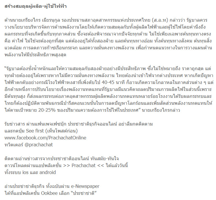 เหลือยังขายไฟฟ้าให้รัฐบาลได้อีก ผ่านซะทีเถอะ อย่าติดเต็มทนแล้ว...... เรื่อง จ่อชงครม.เปิดเสรีโซลาร์รูฟ 10ปีรับซื้อเพิ่ม5พันเมกะวัตต์ ที่มา : ไทยโพสต์ สปช.ด้านพลังงาน ชง ครม.เปิดเสรีโซลาร์รูฟท็อป ก