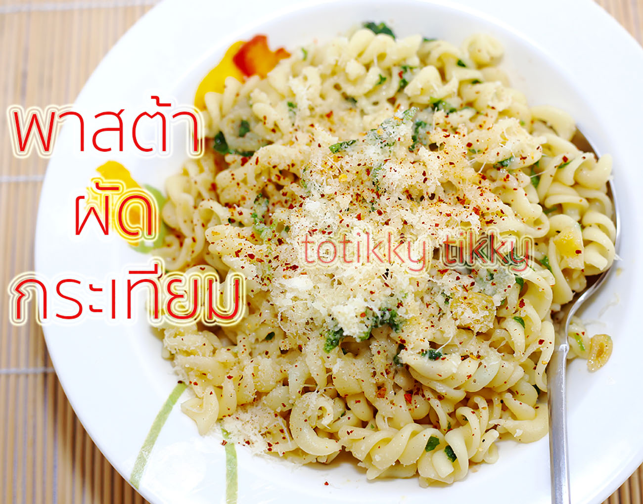พาสต้าผัดกระเทียมอาหารฝรั่งทำเองงบไม่แพง