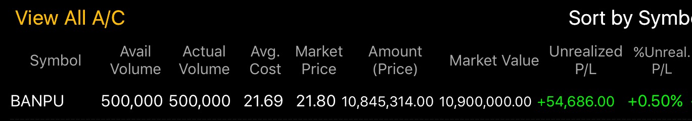 ขาย IVL ไปเมื่อวาน สลับมารับ IRPCแทนตอนปิดตลาด กับรับเพิ่มวันนี้เช้า ตอน ATO เย็นนี้รู้กัน ใจ ว่าจะขายไปซื้อ BANPUต่อ ปิดตลาดขายตัวที่รับมาเมื่อเช้าออกไป เหลือแค่ของเดิม run p