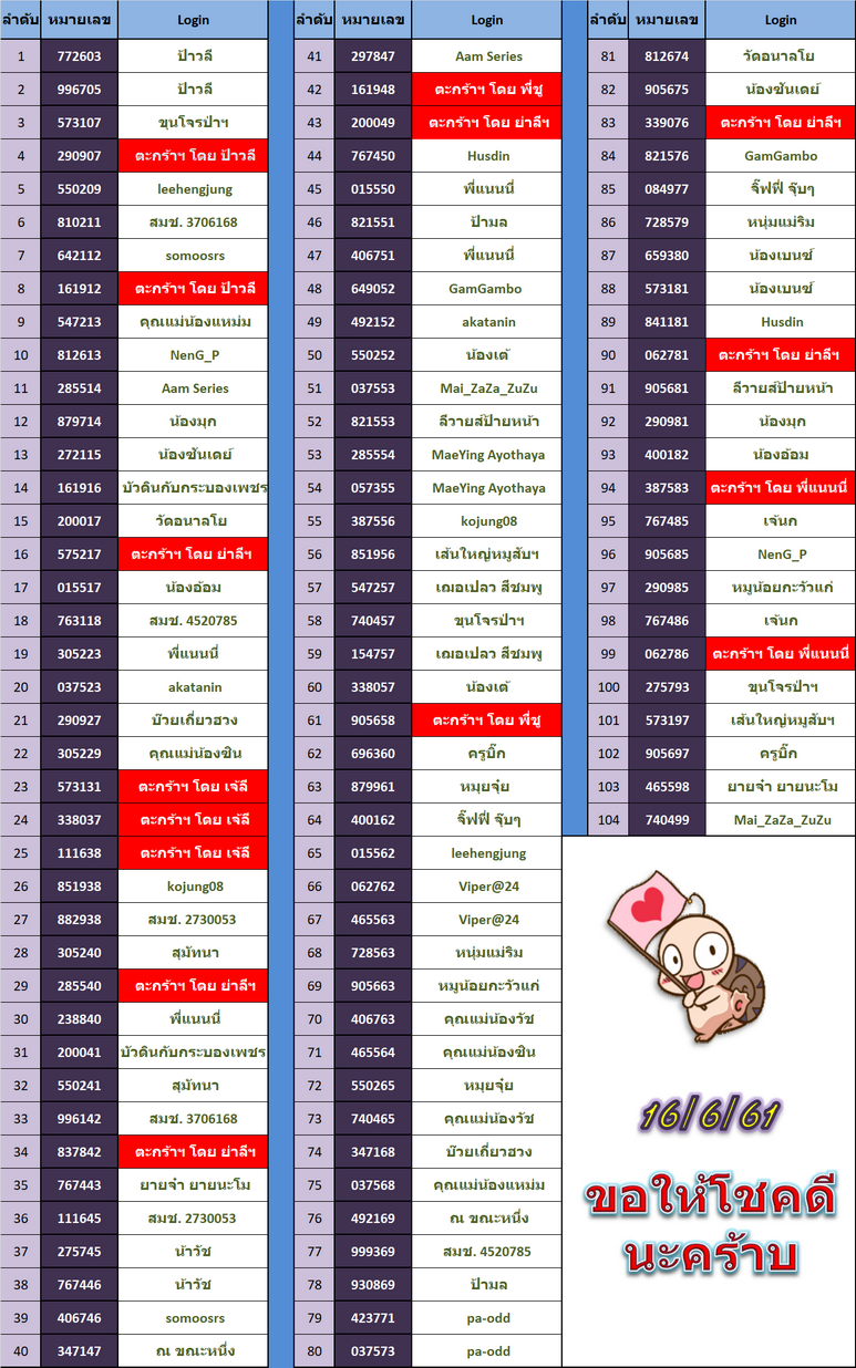 รายนามทีมงาน + สปอนเซอร์ เฉพาะงวดวันที่ 16 มิ.ย.61 มีดังนี้...