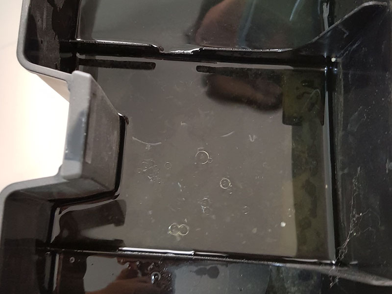 เห็นเหมือนมีน้ำมันอะไรสักอย่างปนอยู่ในน้ำ ในช่องน้ำทิ้งด้านหลัง แล้วกลิ่นนี้ใช่เลย
