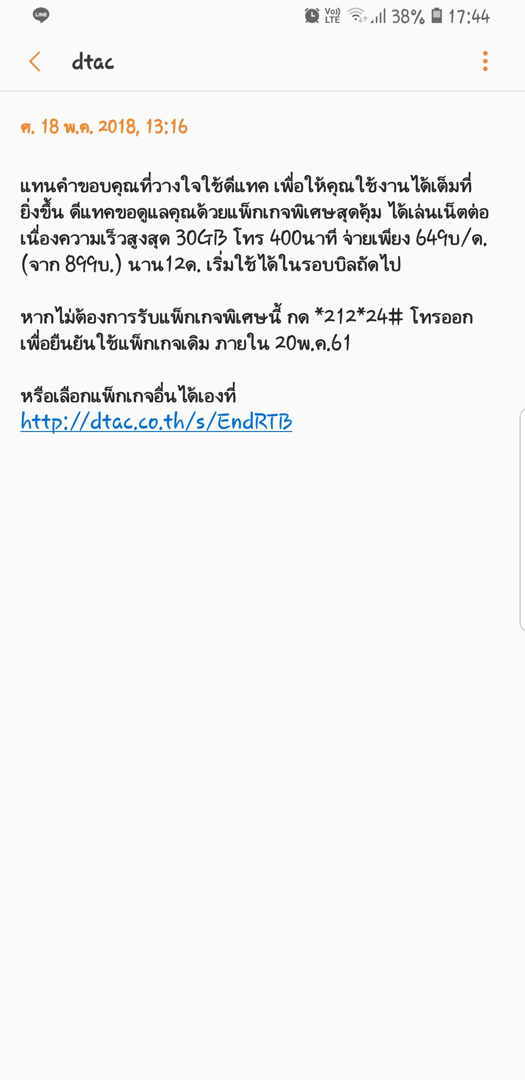 Dtac - SMS ของท่านกลับมายัดเยียดให้บริการผมอีกแล้ว จะหลอกหลอนลูค้าของท่านอีกนานเท่าไร
